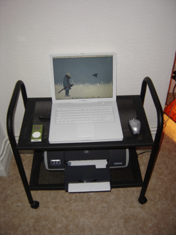 C'est mon meuble "de rangement" pas mon bureau déjà c'est trop bas et en plus pour la souris y'a les trous ... Je l'utilise plutot sur mon lit ou sur la table de la cuisine, j'ai pas de place pour un vrai bureau...