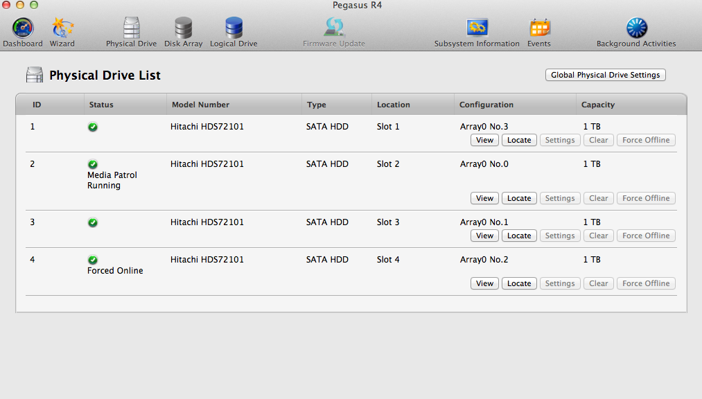 Après des misères diverses postées dans différents posts sur ce forum, je reviens ici pour tout centraliser, ce qui peut aider ceux qui sont dans la même galère. J'ai finalement changé un disque marqué "dead" par un neuf. Tout allait bien, il était reconnu, mais sur les 3 autres, un "disk array" était déclaré dans un état critique. J'ai tenté une sauvegarde Time Machine qui a échoué. Le mode d'emploi étant incompréhensible, j'ai voulu faire un transfert vers ce nouveau disque, mais tout était grisé. Alors bêtement, après plusieurs bidouilles, j'ai enlevé le disque de sa baie puisqu'on peut les changer "à chaud". Et paf! il devait être en train de fonctionner car il s'est immédiatement déclaré "dead" Tout neuf, 200€ à la poubelle! Du coup, en cherchant sur Google, je suis tombée là-dessus : http://superuser.com/questions/544597/prom...r-power-failure Ca force à monter un disque, ce que le logiciel fourni par Promise ne sait pas faire. J'ai essayé avec le vieux disque, mort, pour voir si on peut quand même récupérer des trucs. Il est redevenu visible dans l'appli "promise utilities" et n'est pas marqué "dead". Je vais voir si je peux récupérer des données, puis faire la même manip en le remplaçant par le disque neuf. Si le problème vous est déjà arrivé, comment avez-vous fait? Pas mal de gens se plaignent de de système RAID du Pegasus, c'est vrai qu'il est bien quand il fonctionne. Après, il faut parler le Klingon. Edit : là je ne peux rien faire, il y a dans "back ground activities" un "media patrol" qui est en route. J'ai dû cliquer dessus pour vérifier, mais n'ai pas pu l'arrêter, alors il me faut attendre qu'il ait fini, ça va être long Voilà ce que ça donne, c'est le n°4 qui était cuit, et l'Array 0 qui est dans "un état critique" :