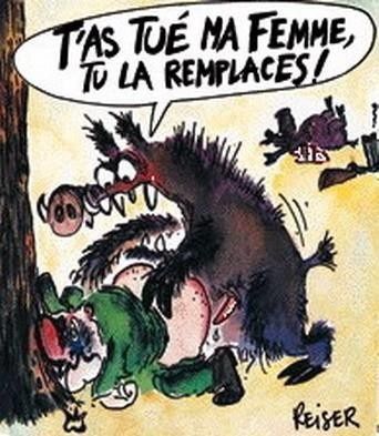 J'ai acheté cette bouteille chez mon fournisseur bio habituel au prix de 7,95 €, Label Vie 147 rue du Dronckaert 59223 Roncq Il y avait d'autres bouteilles dont une avec une étiquette signée Wolinski. Ce vin plus ou moins ordinaire, bio, de l'année 1976, je ne sais même pas s'il est buvable, mais, ne vous rappelle-t-il pas un dessinateur trop tôt disparu ? J'espère que ses ayants droits touchent encore un peu de royalties ! -------------------- iMac 27" Retina 5K 1To Fusion drive 8 Go RAM Intel Core I5 quadricœur à 3,5 GHz Mojave 10.14.6 , iMac Intel Core I5 3,1 GHz 1To (El Capitan 10.11.6 depuis le 13/9/2016) en rade carte mère !, MacBook Pro 17" 500 Go Snow Leopard, iMac G5 20" PPC Tiger 250 Go Rev A, iPhone 14 128Go OS 16.1.1 et SONY pour la photo numérique Minolta pour l'argentique Pink #FD3F92 Breton MB ![]() Attention aux huîtres, SURTOUT celles qui mangent des oiseaux !How much wood would a woodchuck chuck if a woodchuck could chuck wood ? |